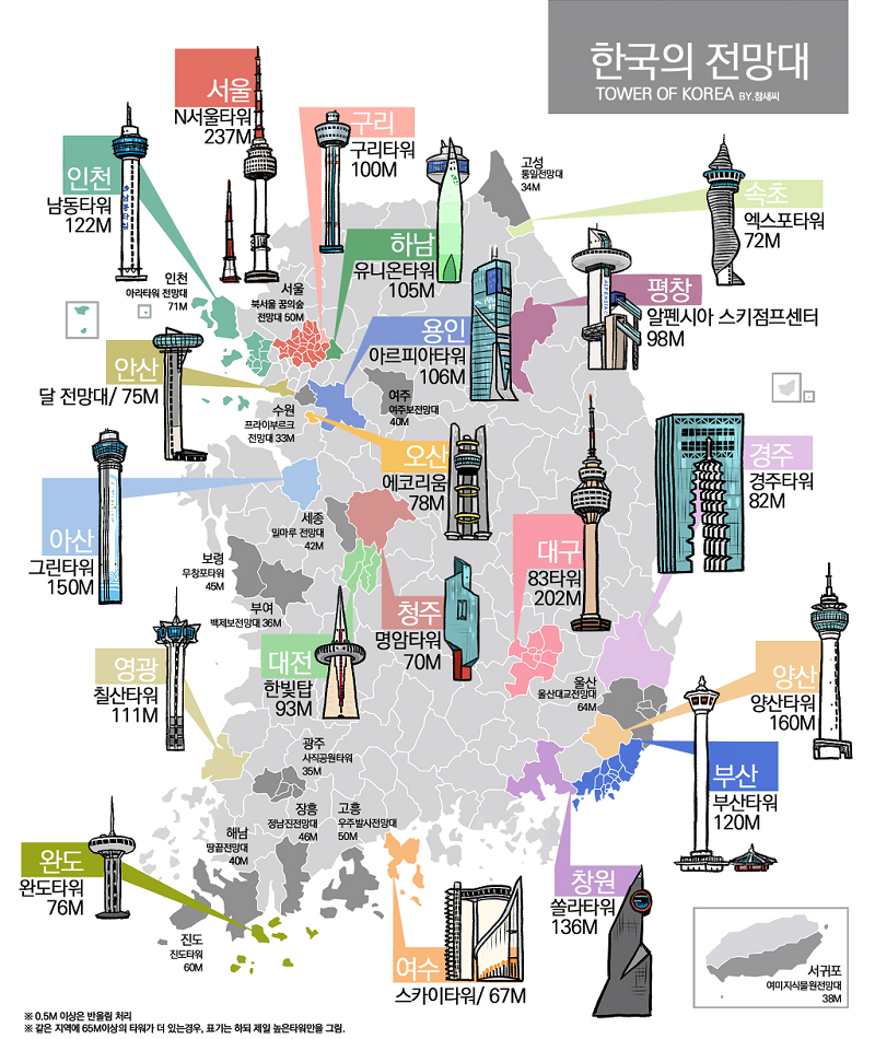 각 지역별 주요 타워에는 어떤 것들이 있는지 알아보아요.
