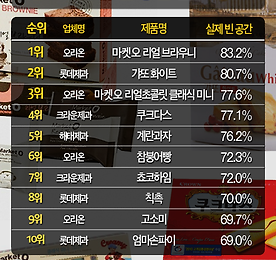 2014 과자별 빈 공간 순위 TOP 10 (과대 포장 순위) 오늘은 맛있는 냠냠 과자 순위입니다!!!! 아니.. 과자의 빈 공간 순위입니다!! ㅎㅎㅎ 몇년전 부터 과자의 과대 포장에 대한 문제가 많이 이슈가 되었습니다. 과자보다 질소가 더 많다! 질소를 1,000원 주고 사니, 과자를 덤으로 주더라~ 하는 등 이러한 과자들을 비꼬는 유머도 많이 유행했었지요. (지금도 여전한가요? ㅎㅎㅎ) 요즘은 조금 나아진 것 같기도 하지만, 그래도 여전히 과대 포장인 과자는 많은 것 같습니다. 오늘 포스팅할 자료는 바로 작년(2014년) 1월에 컨슈머 리서치에서 조사한 과자별 빈 공간 순위입니다! 순위를 바로 볼까요!!! 국내의 유명한 과자 제조사들이 모두 사이좋게 순위를 나누어 가졌습니다. 아래는 1위를 오리온 마켓오 리얼 브라우니 과자의 사진 입니다. ㄷㄷㄷ 1위 할만합니다.. 더보기 이전 1 ··· 224 225 226 227 228 229 230 ··· 303 다음
