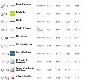 글로벌 2,000대 기업 중 백화점 부문 TOP 10 (2014년 포브스 선정) 지난 포스팅에 이어 백화점 시리즈 시작합니다!! 이번에는 포브스(Forbes)에서 선정한 글로벌 2,000 대 기업(The Global 2000) 중, 백화점 부문만을 뽑은 자료입니다. 자료는 2011년 부터 2014년까지의 순위 변화를 함께 조사하여 실었습니다. 2가지의 순위표를 보여드릴 예정인데요, 첫번째는 포브스가 선정한 최근 4년간의 백화점 순위 변화 표이고, 두번째는 2014년 백화점의 실제 매출과 시장 가치에 대한 순위 표입니다. 1. 최근 4년간 포브스 백화점 순위 변화 순위 2011년 2012년 2013년 2014년 1 프렝탕 (프랑스) 프렝탕 (프랑스) 프렝탕 (프랑스) 메이시스 (미국) 2 콜스 (미국) 메이시스 (미국) 메이시스 (미국) TJX 코스 (미국) 3 메이시스 (미국) 이온.. 더보기 이전 1 ··· 264 265 266 267 268 269 270 ··· 303 다음